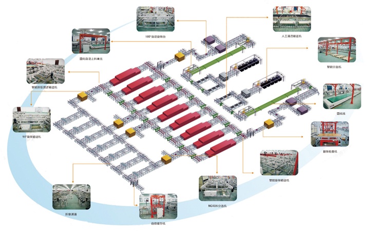 1.Laying-up Unit 2.Overlaying-up and Soldering Unit 3.Corner Distributing Unit 4.Linear Conveying Unit 5.Visual Detection Unit 6.90° Direction Turning Unit 7.Sorting Distributing Unit 8.Multifunctional Conveyor Unit With Folding Channel Unit 9.Contacting Unit |